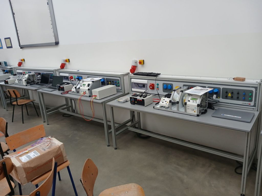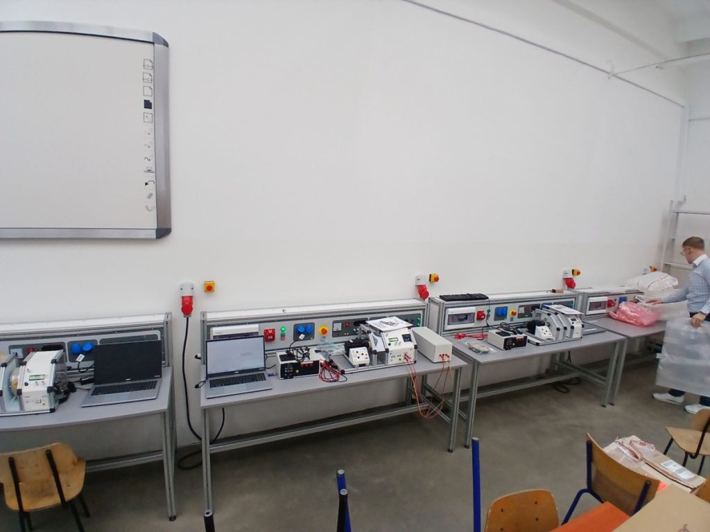 W DNIU 20.03.2026 Z PROGRAMU ,,Wzmocnienie konkurencyjności uczniów na rynku pracy III”, współfinansowanego z Europejskiego Funduszu Społecznego Plus w ramach Programu Regionalnego Fundusze Europejskie dla Małopolski 2021-2027″ OTRZYMALIŚMY DOPOSAŻENIE DO PRACOWNI MONTAŻU , EKSPLOATACJI MASZYN I URZADZEŃ ELEKTRYCZNYCH. CZTERY STANOWISKA DO BADANIA PARAMETROW MASZYN I URZADZEŃ ELEKTRYCZNYCH. STEROWANIE I SYMULACJE MOGĄ PRZEBIEGAĆ Z WYKORZYSTANIEM APLIKACJI KOMPUTEROWEJ.